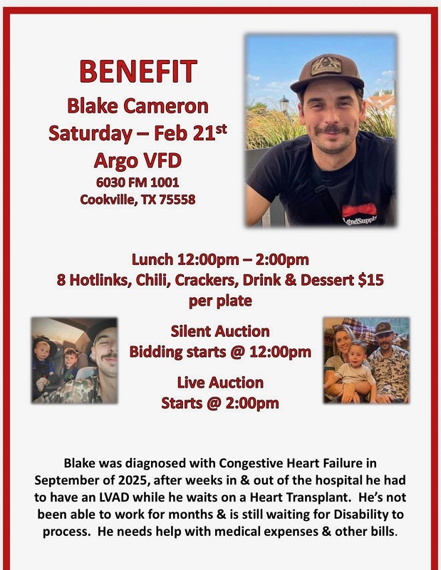 Consider "Letting your light shine through your good works and thereby glorifying God" by helping this young man and his family through some very hard times on February 21, and spread the word to others. Blake is the grandson of long time residents Gaylon and Johnnie Cameron.